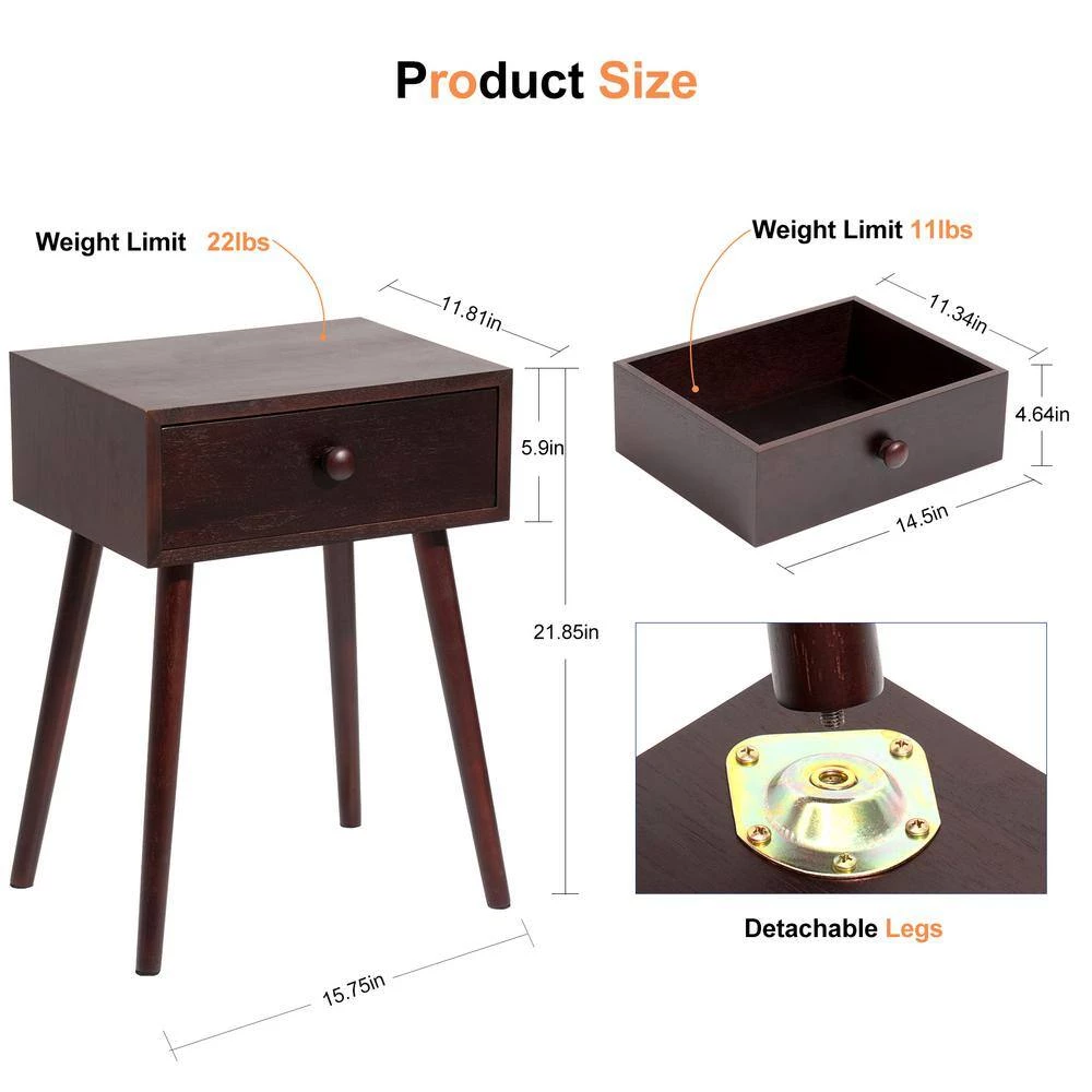 - Can be placed at narrow space as sofa side table or bed end table, and the drawer is for storage, which makes it greatly to be nightstand for bedroom