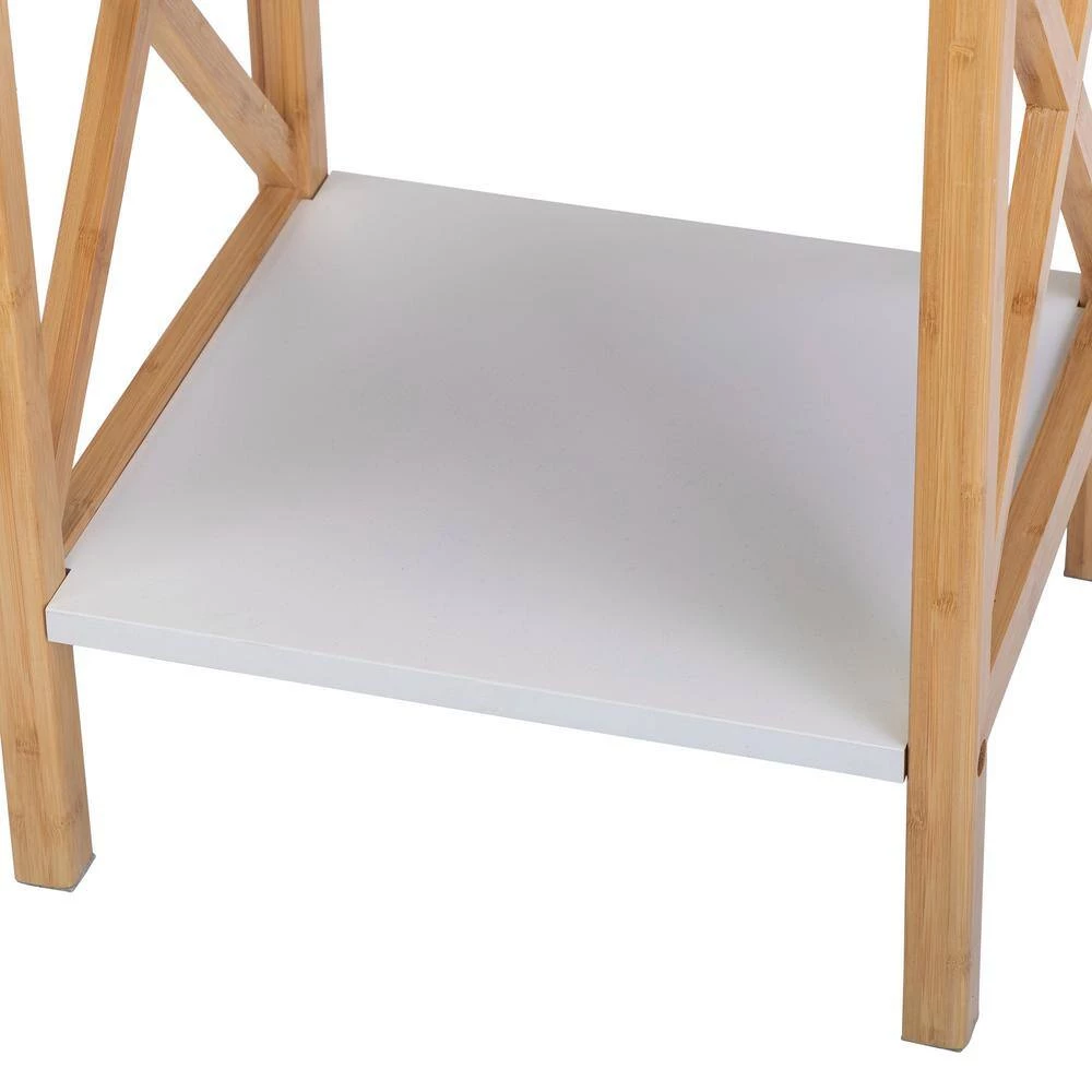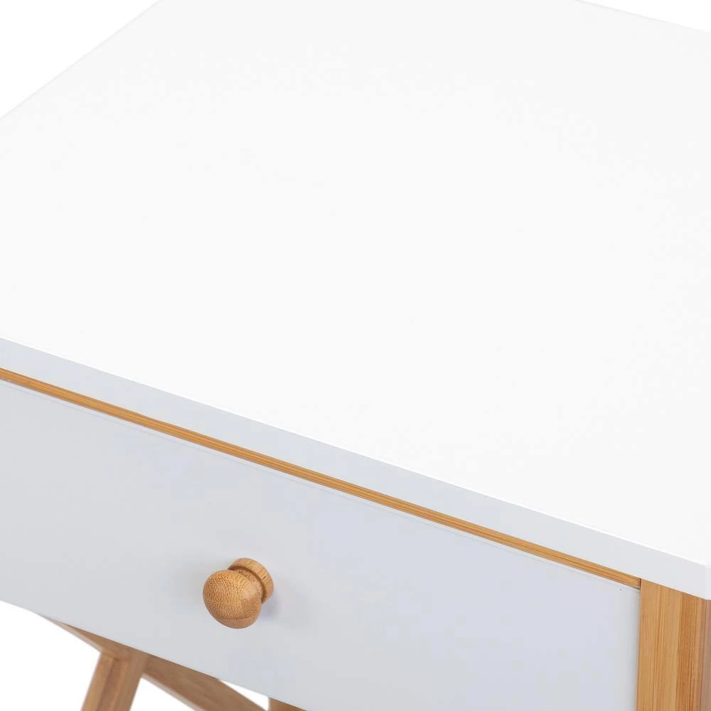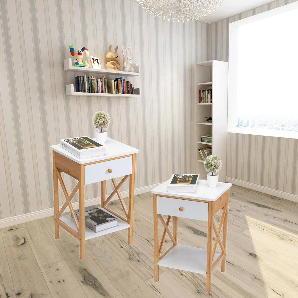 - Featuring a popular x-shape style, the 2-tone nightstand with a drawer and shelf can serve as a sofa side table in living rooms and offices, or as a bedside table in bedrooms