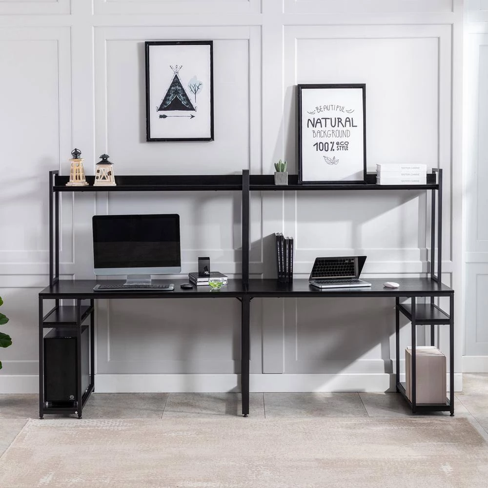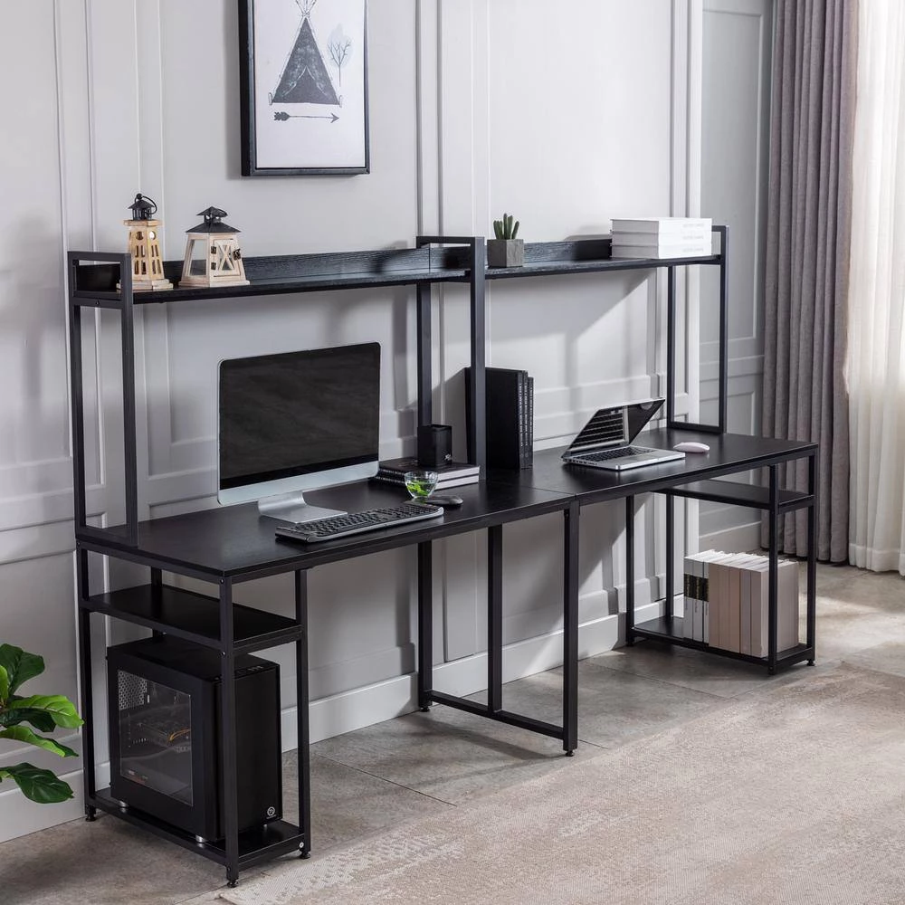 - Desk allows 2-person to work side by side without compromising on space double working space with bookshelf is perfect for your friends, workmates and you to play and work together