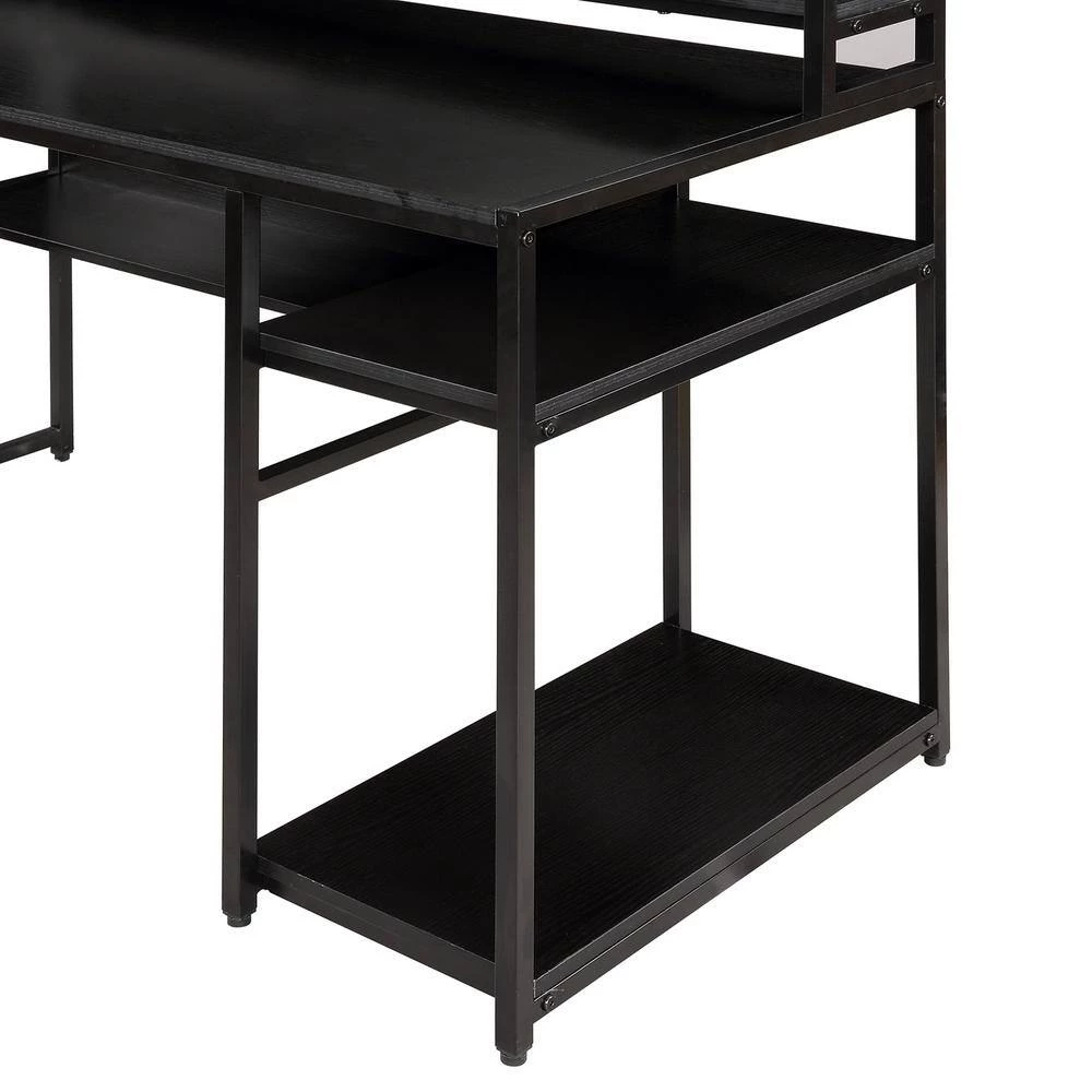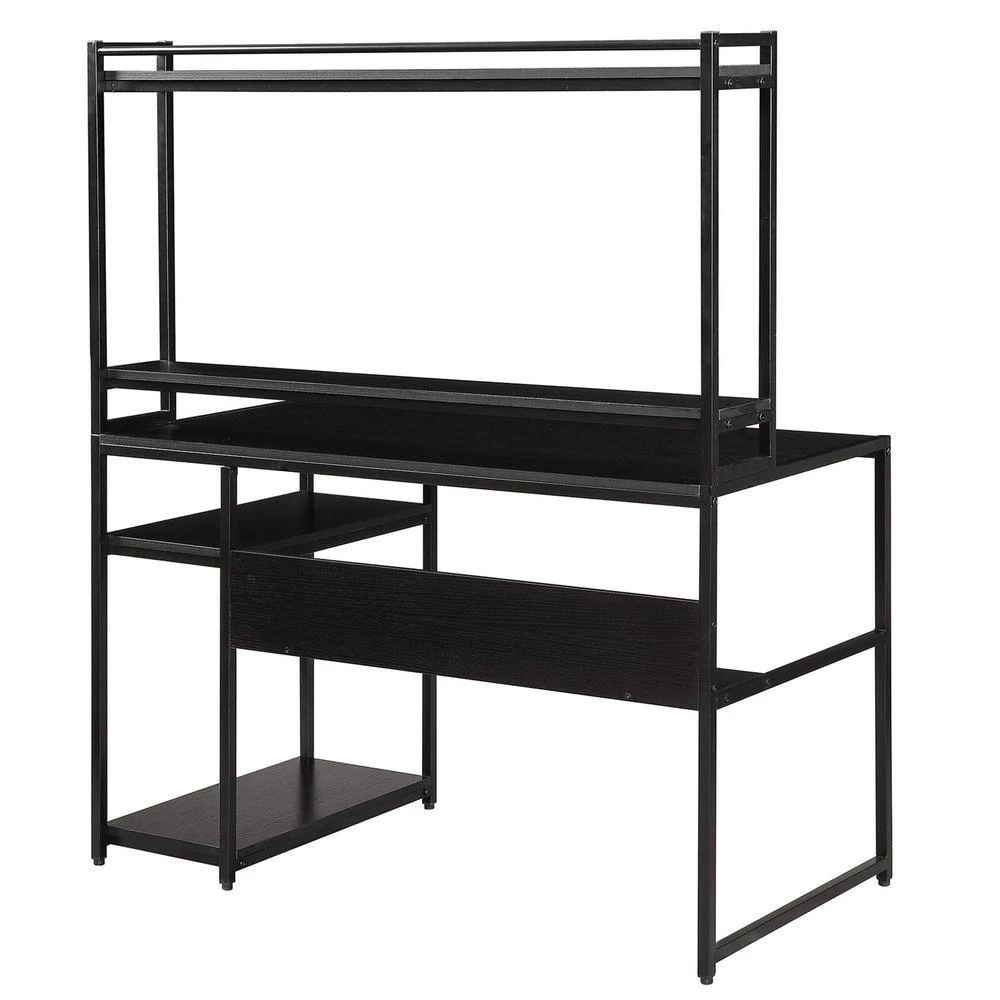 23.6 in. Rectangular Black Wood Computer Desk with 2-Tier Bookshelf by Wateday