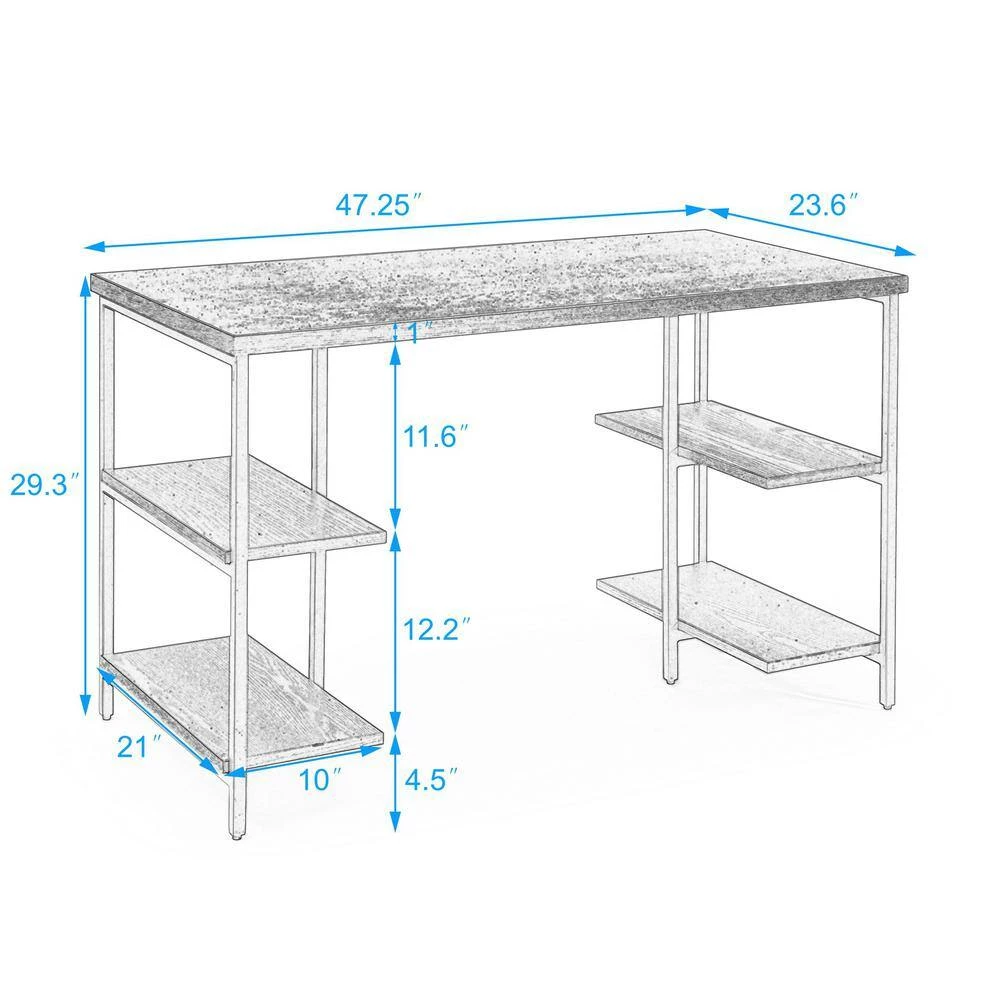 - Desk size: 47.25 in. x23.6 in. x29.3 in. H