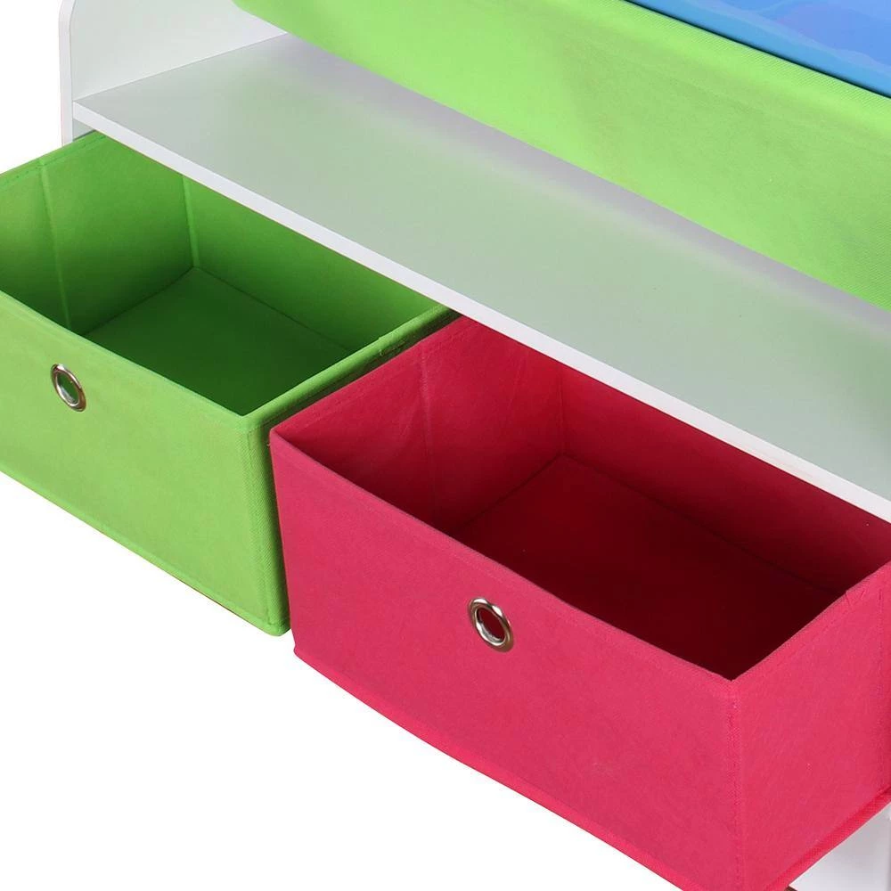 This white children’s bookcase has 3 layers of fabric sling books and 2 spacious boxes at the bottom. You can display your child’s favorite storybooks and cards on the children’s bookshelf to make it more colorful. You can put girl or boy’s toy cars, dolls, toy bricks, etc. in the fabric box space.