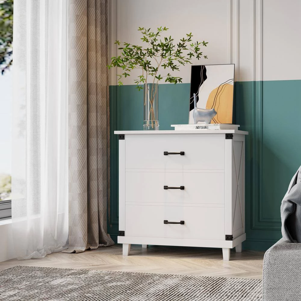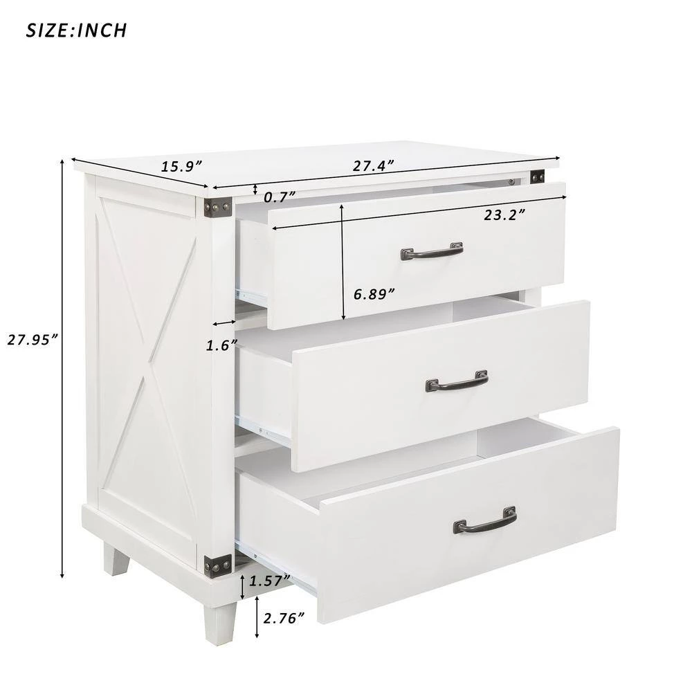 3-Drawer White Nightstand 27.95 in. H x 27.4 in. W x 15.9 in. D by Wateday