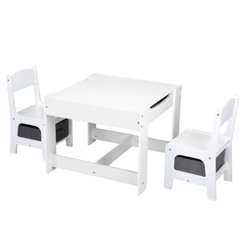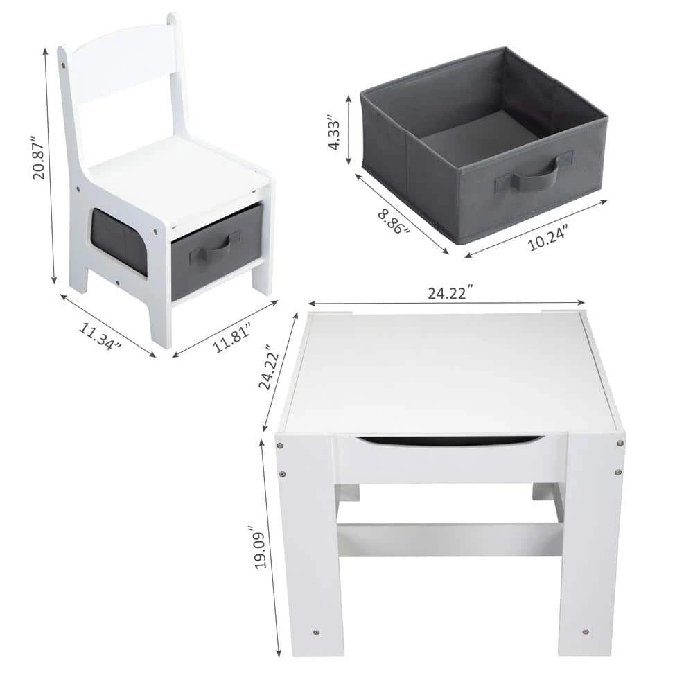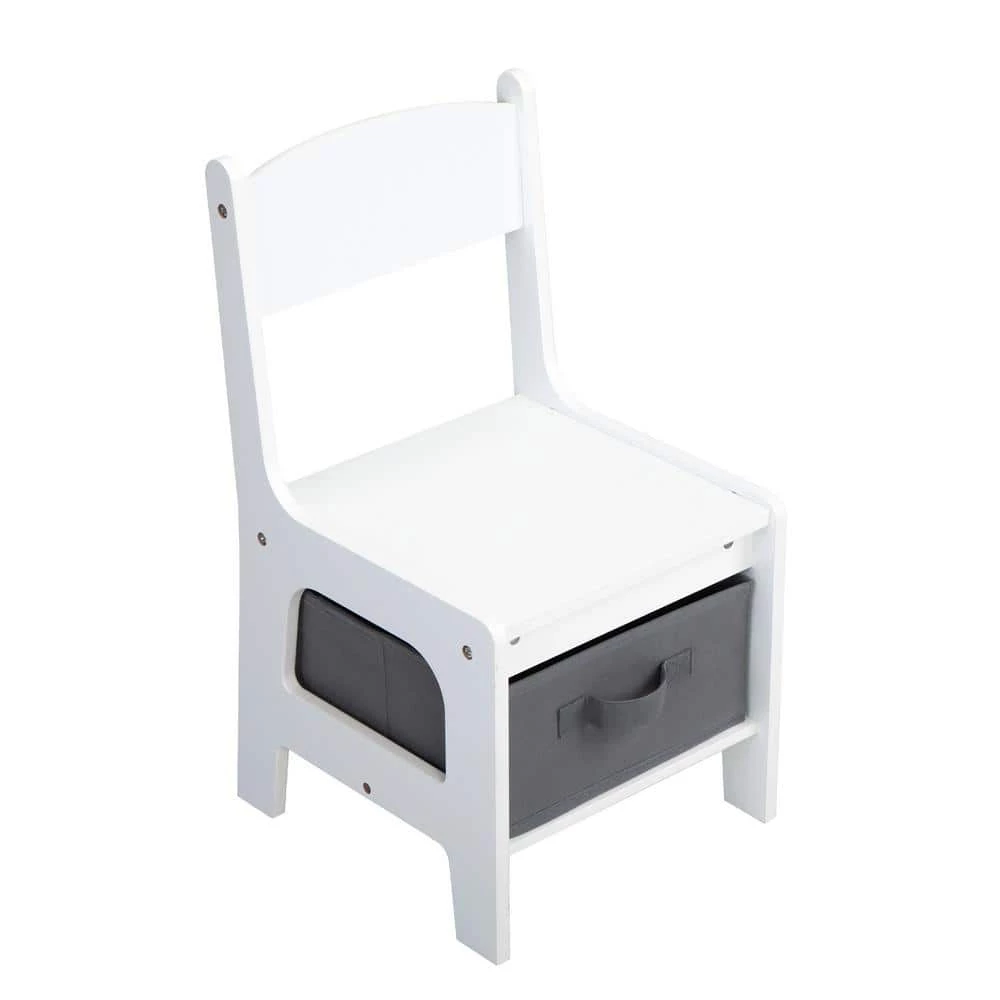 - A spacious hidden compartment under the tabletop and 2 pull-out fabric gray drawers in the chairs, offer convenient spaces for toys, stationery, and books.