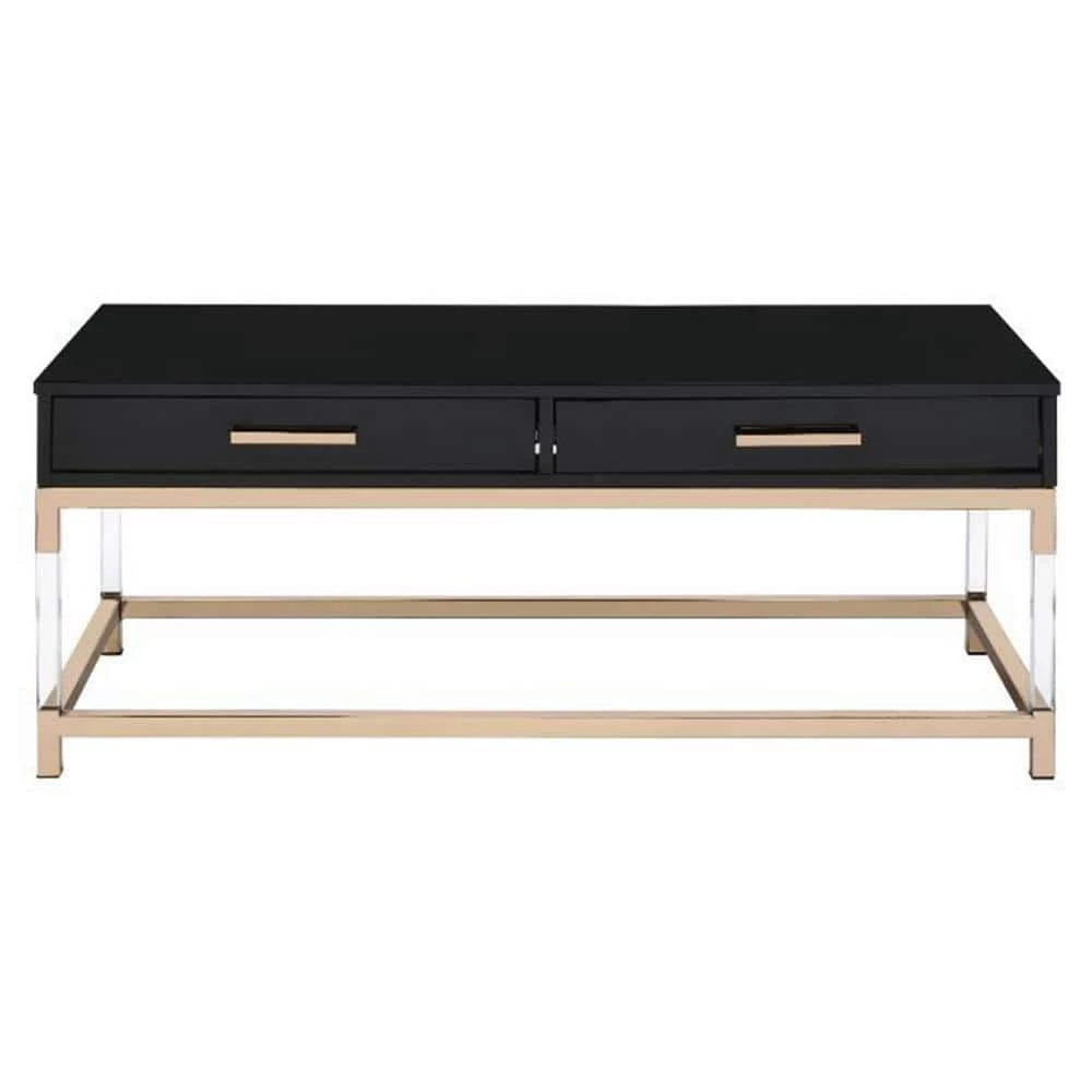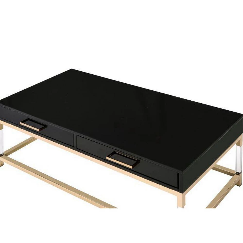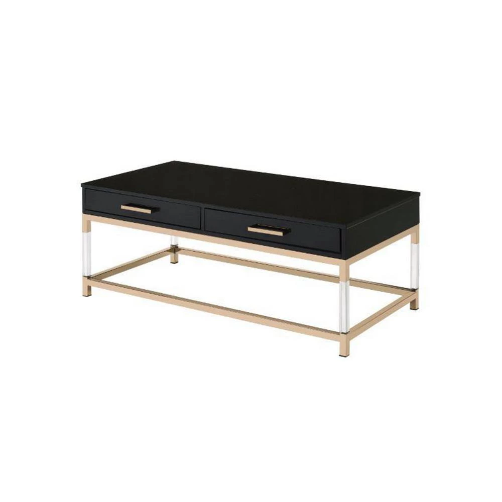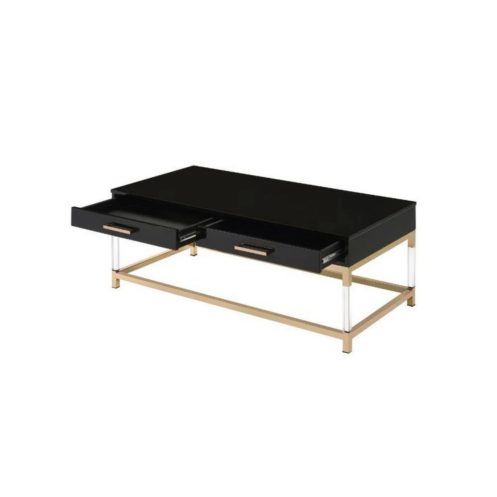 - Beautiful metal frame in gold finish adds a touch of glam to contemporary piece, with clear acrylic legs that elegantly frame design