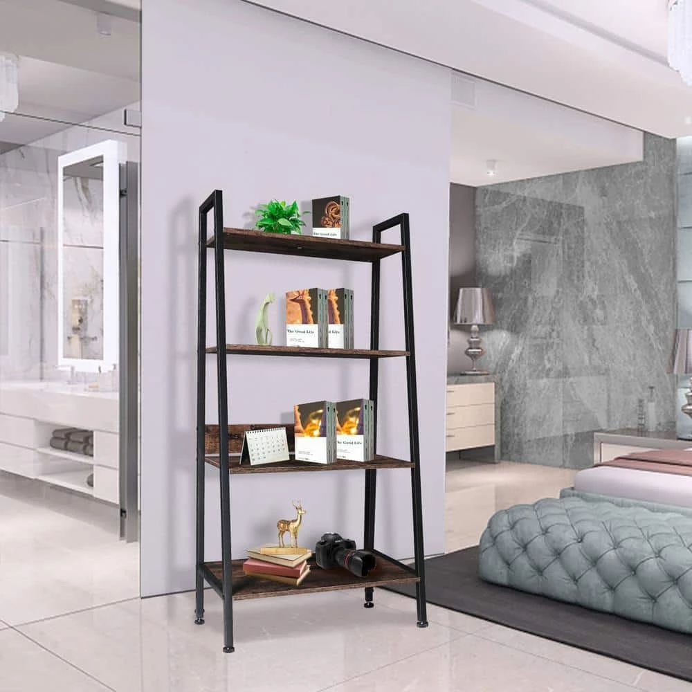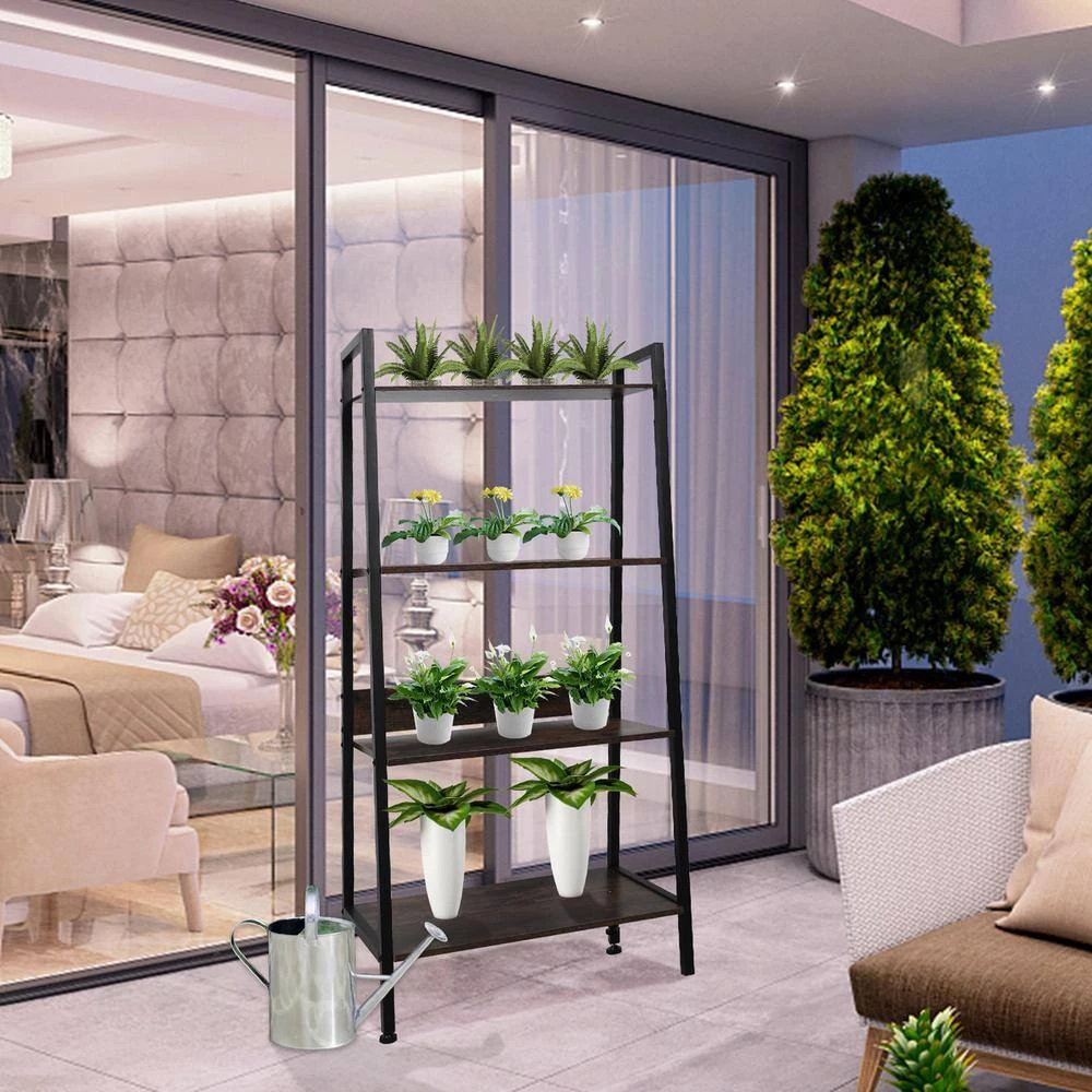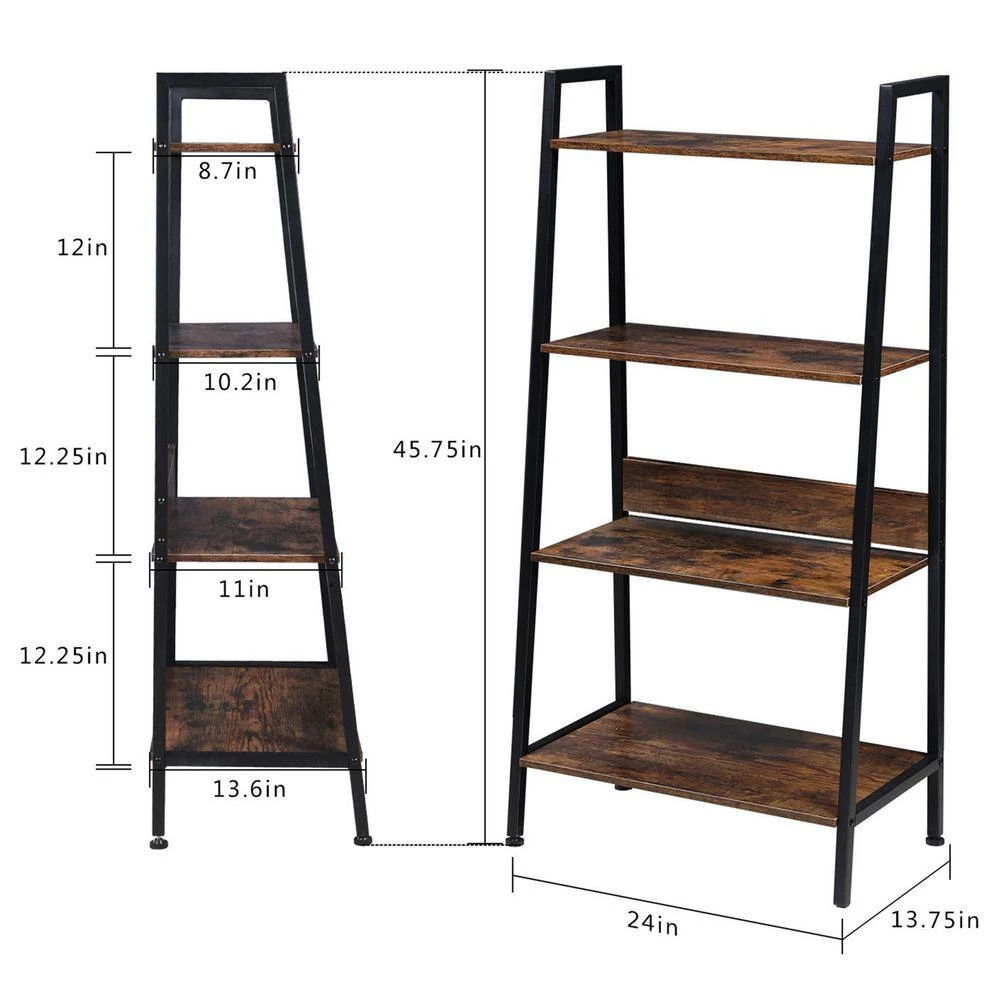 - The steps get wider from top to bottom, offering plenty of space .The ladder shelf can be used as a plant stand, bookcase, bathroom cabinet, storage organizer or a display stand for decorations.
