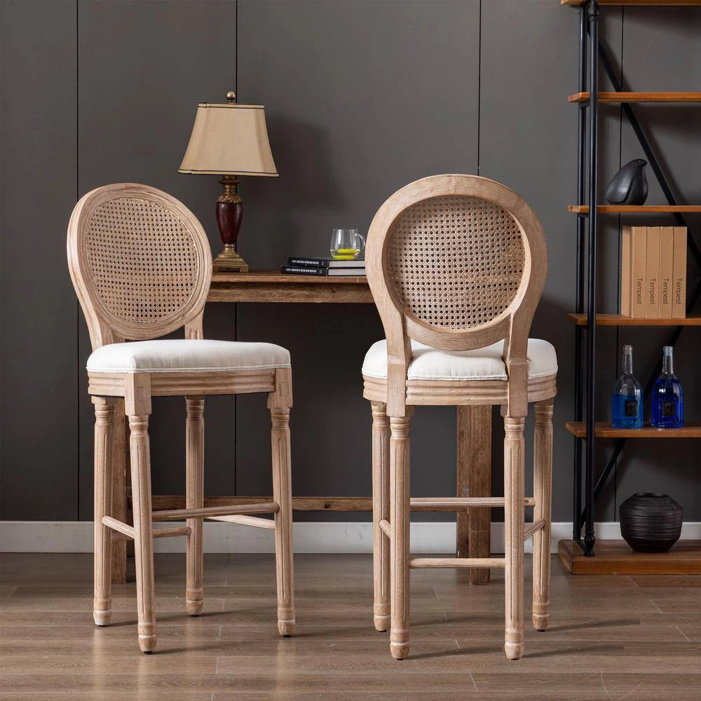 - Including beautifully carved legs and a rounded backrest, this barstool set offers a French country inspiration for your home