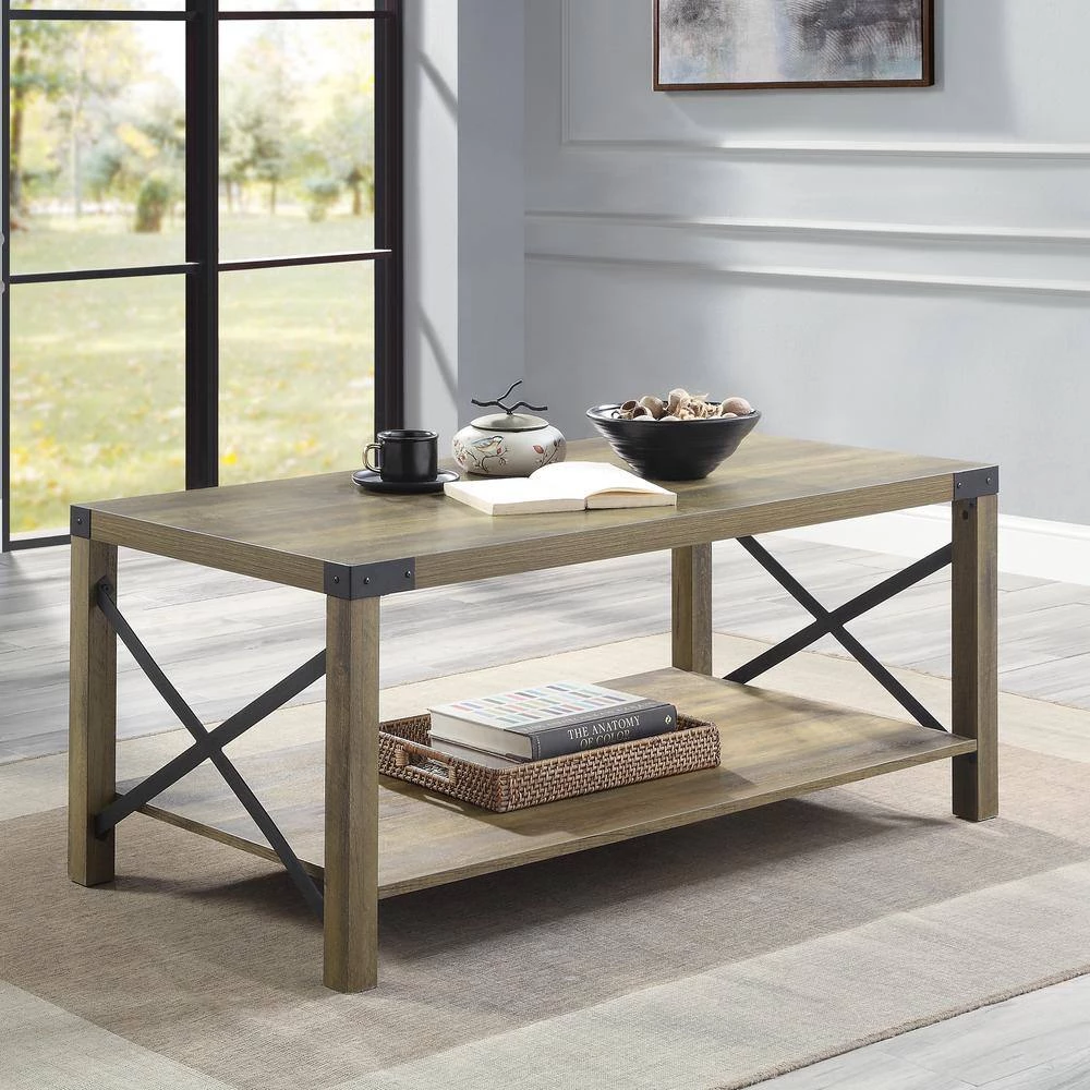 - This coffee table is designed in a concise industrial style, with smooth lines and simple silhouettes, which can be perfectly matched with any other furniture style.