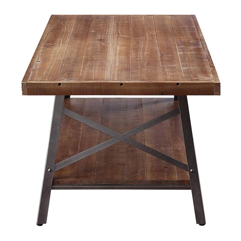 - This classic rectangular occasional table features a weathered oak tabletop with a sandy black metal base.