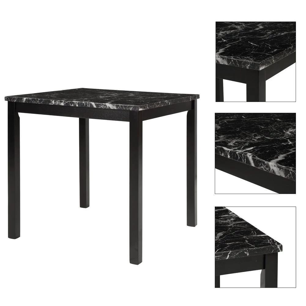 - This 5-Piece dining set adds a modern twist with a distinctively glossy appearance and a marbleized wooden tabletop.