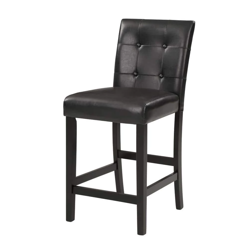 - Both the seat cushion and the back of this black wooden dining set are padded in highly elastic sponge and tufted leather upholstery, it also feature footrests for upgraded comfort.