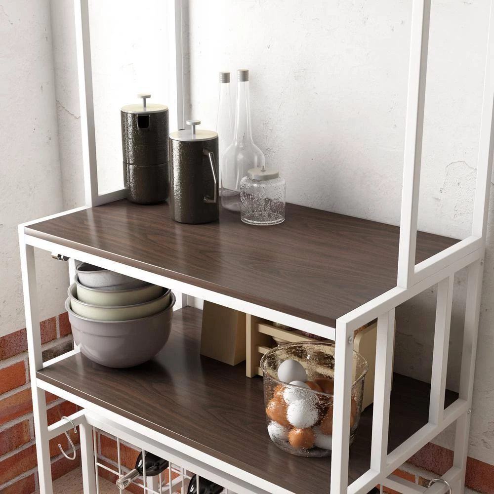 - This kitchen rack can not only be a baker rack or a wine rack table but also be a modern bookcase in living room or an office rack in your study. Image everything is in their position but can also be within reach. Timeless appearance makes the rack suitable for any rustic room.