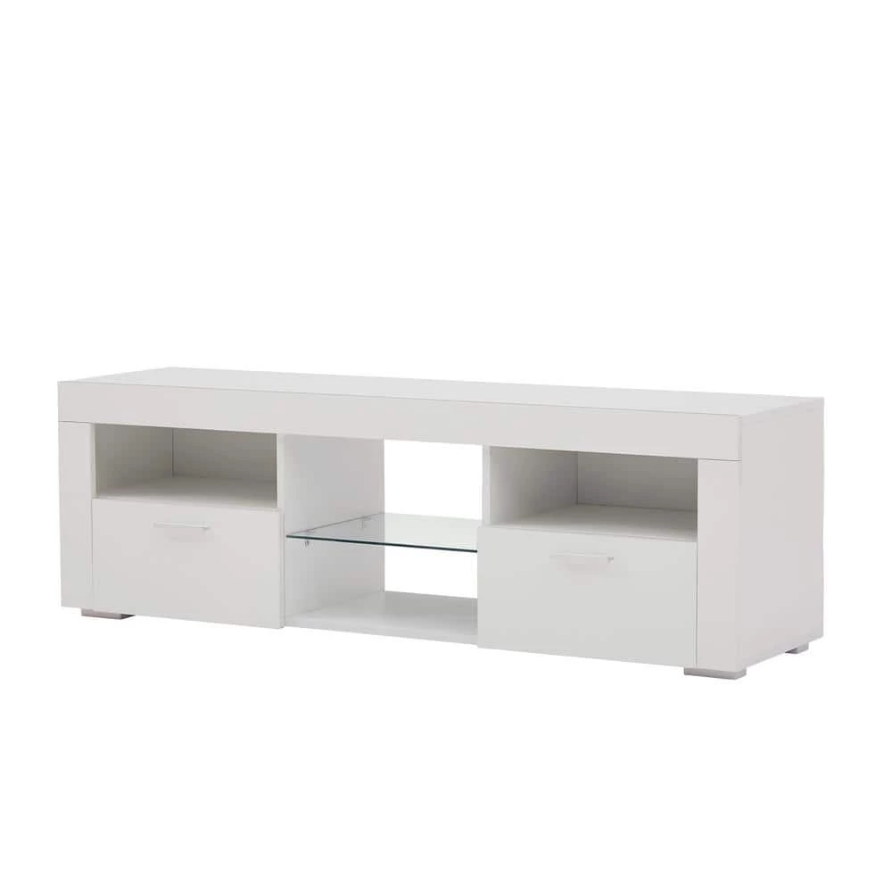 51 in. White TV Stand with 2-Drawers Fits TV’s up to 55 in. with LED Lights by Wateday