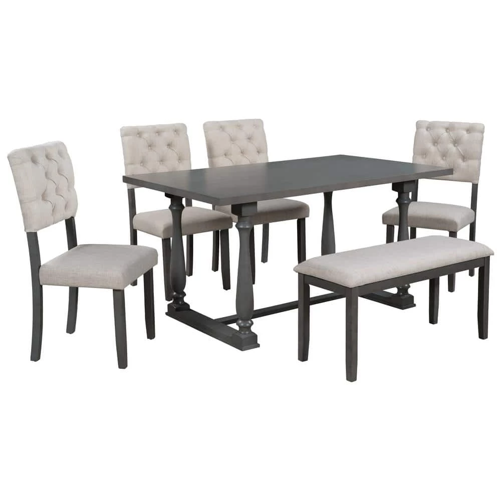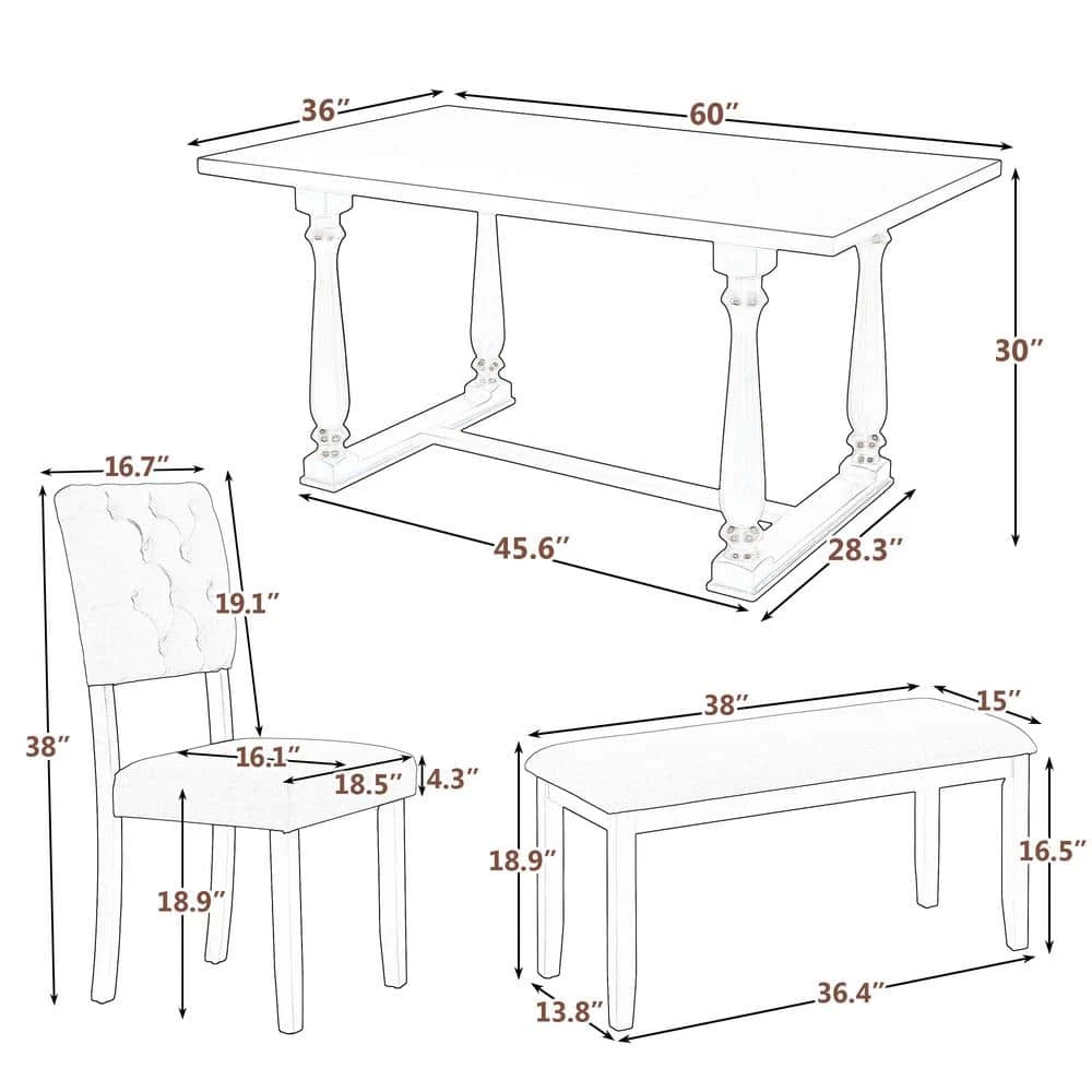 - This set of tableware includes 1 table, 4 matching chairs and 1 bench. The design is practical and compact, which can comfortably fit into your space and fully accommodate you and your family.