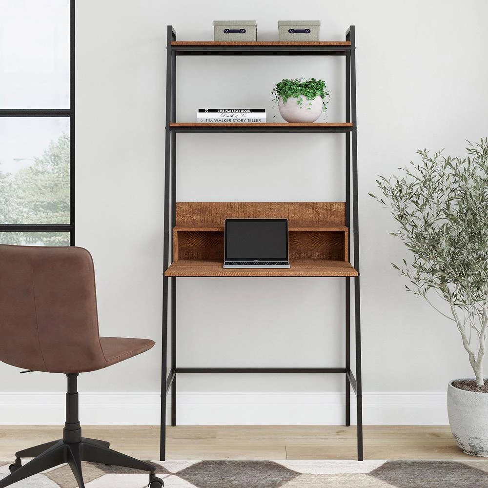 This ladder style desk offer an ultimate workspace for your home office or study room. This leaning ladder desk adds a fair amount of industrial vibe to your home office. Its open design is made from a blend of powder-coated steel and engineered wood, with spacious room for building your own workstation.