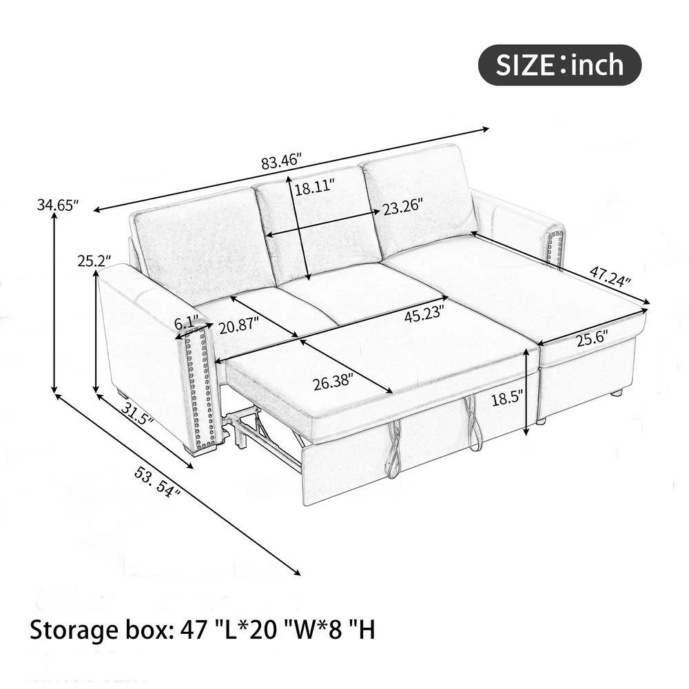 - Tail of the sofa bed is pulled out in a drawer type, the equipped portable handle with the assistance of the bottom pulley device to quickly complete the bed transformation