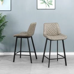 35.80 in. White Low Back Metal Frame 28 in. Bar Stool with PU Seat (Set of 2) by Wateday