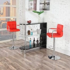 32.29″ Brown Leather Back Metal Frame 23.63″ Bar Stool with Leather Seat, 1 Piece by Wateday