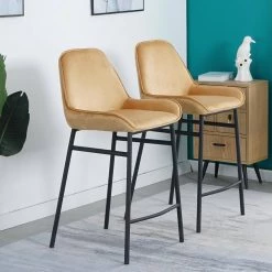 39.80 in. Green Low Back Metal Frame 28.7 in. Bar Stool with Velvet Seat (Set of 2) by Wateday