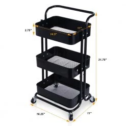 Black 3-Tier Utility Cart with Wheels and Handle by Wateday