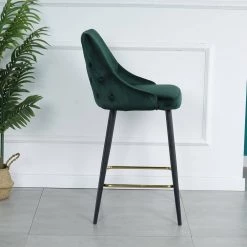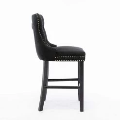 41.00″ Black Tufted Back Wooden Frame 27.2″ Bar Stool with Velvet Seat, Set of 2 by Wateday