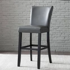 45.75″ Gray Leather Back Wooden Frame 30.7″ Bar Stool with leather Seat, Set of 2 by Wateday