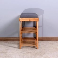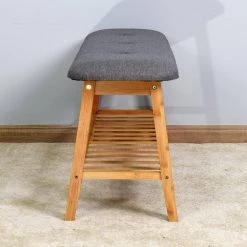 Natural Color Shoe Rack Bench with 2-tier Shelves 19.88 in. H x 13 in. W x 23.62 in. D by Wateday