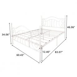 White Queen Metal Bed Frame with Sturdy Steel Slat by Wateday