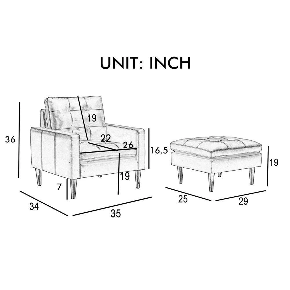 - The overall size of this living room chair: Chair: 35*34*36 inches; Ottoman: 29*25*19 inches