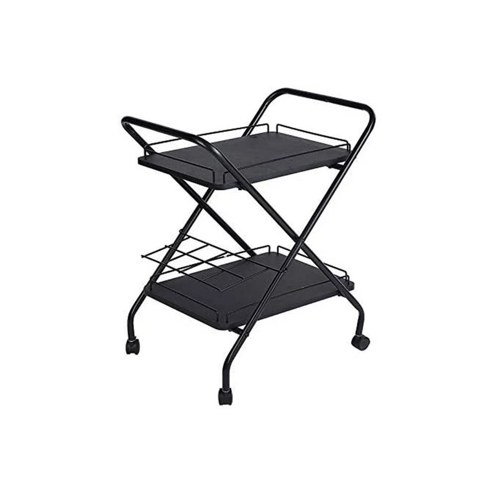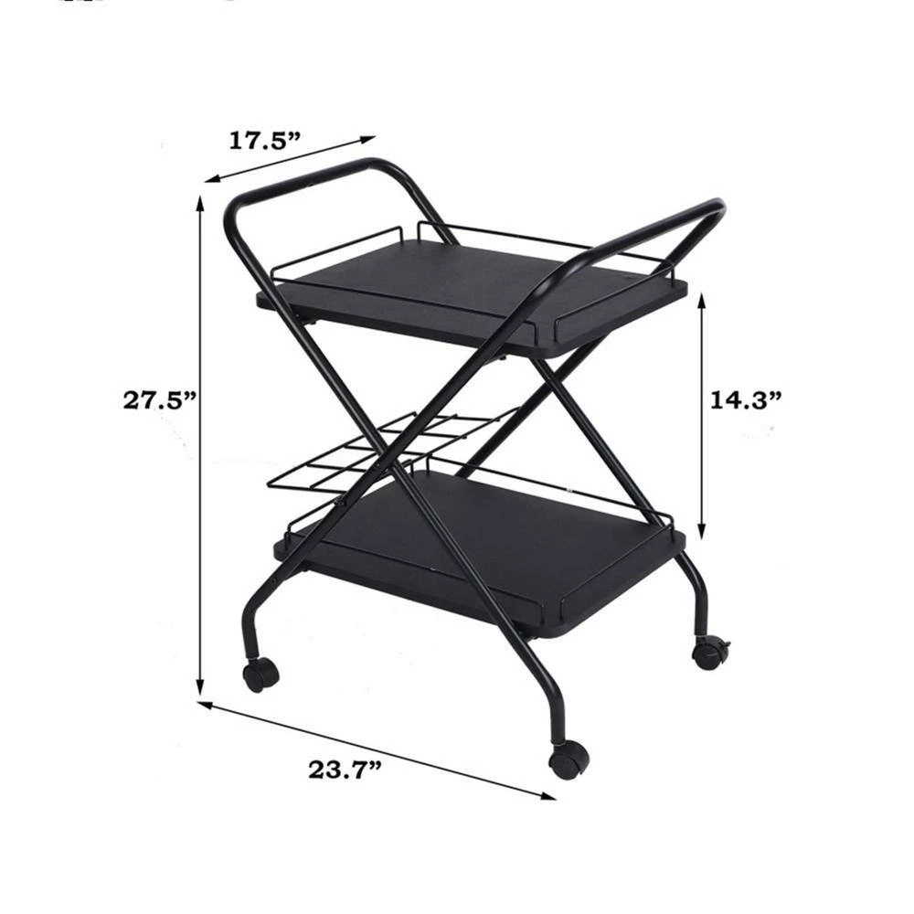 The cart is equipped with a wine rack, which can place wine bottles and condiment bottles. The wine bottles can be fixed on the cart, and the storage rack on the top can be used as a tray. At the same time, there are guardrails around each storage rack to prevent things on the car from falling when the cart is moving.