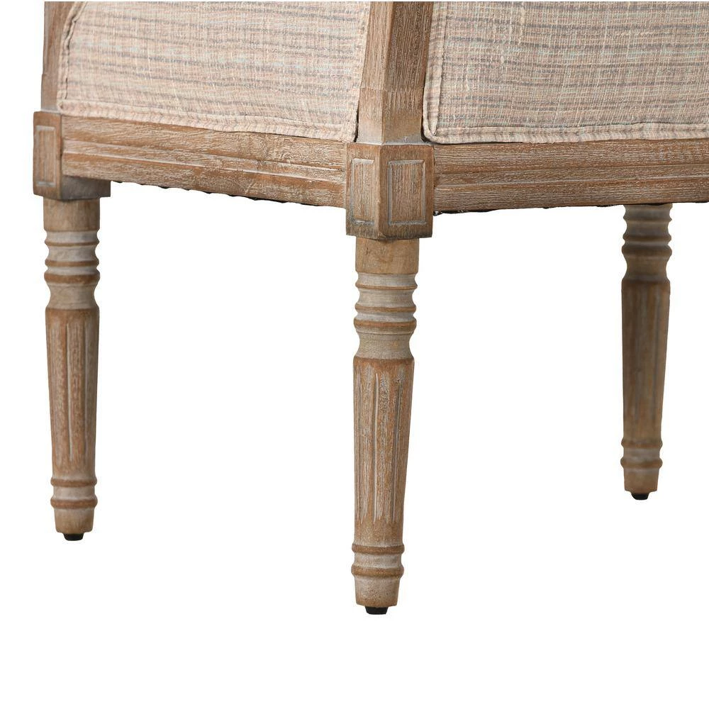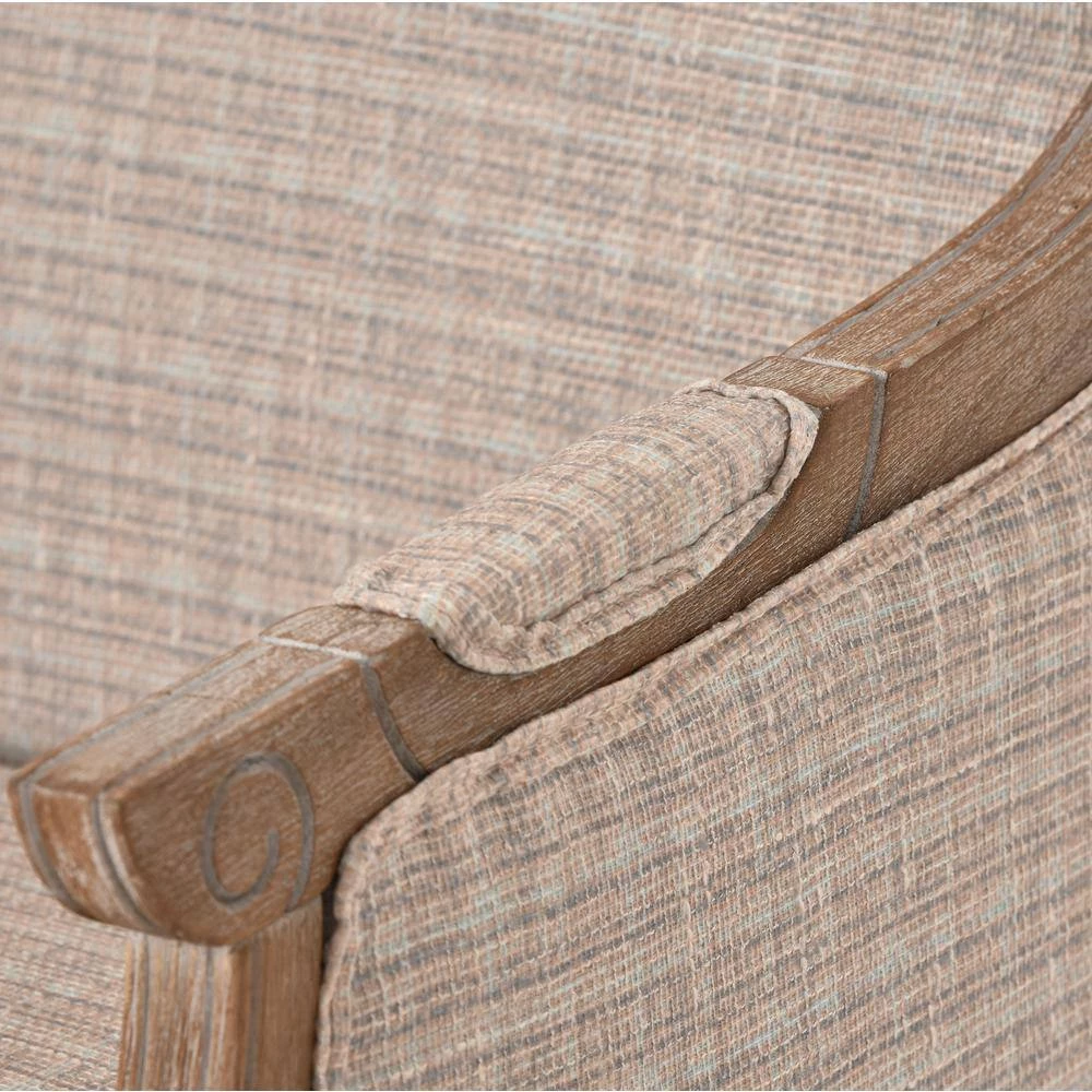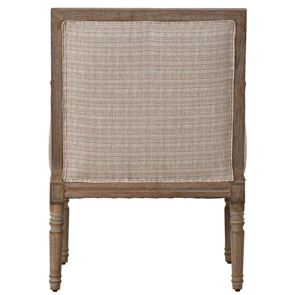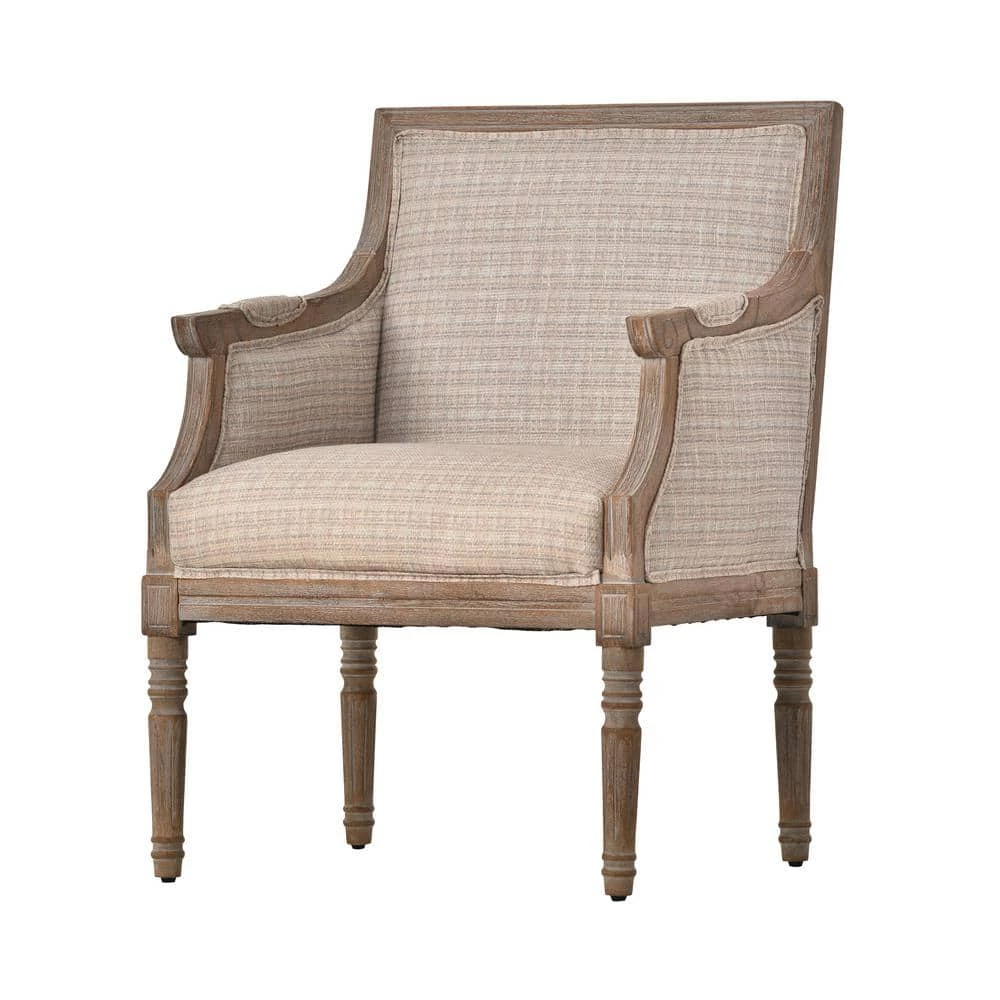 This chair is more than just a spot to sit – with a stylish design and inviting seat, it’s about to become “the” spot to sit in your home. Crafted with a solid rubber wood frame, it features a foam-filled, cotton-blend upholstery on the seat, back, and on the armrests for a welcoming feel in any room. And with the striped pattern on the seat, the carved details on the frame, and cloth art medallion accents, this piece delivers a classic look that’s right at home in country styles.