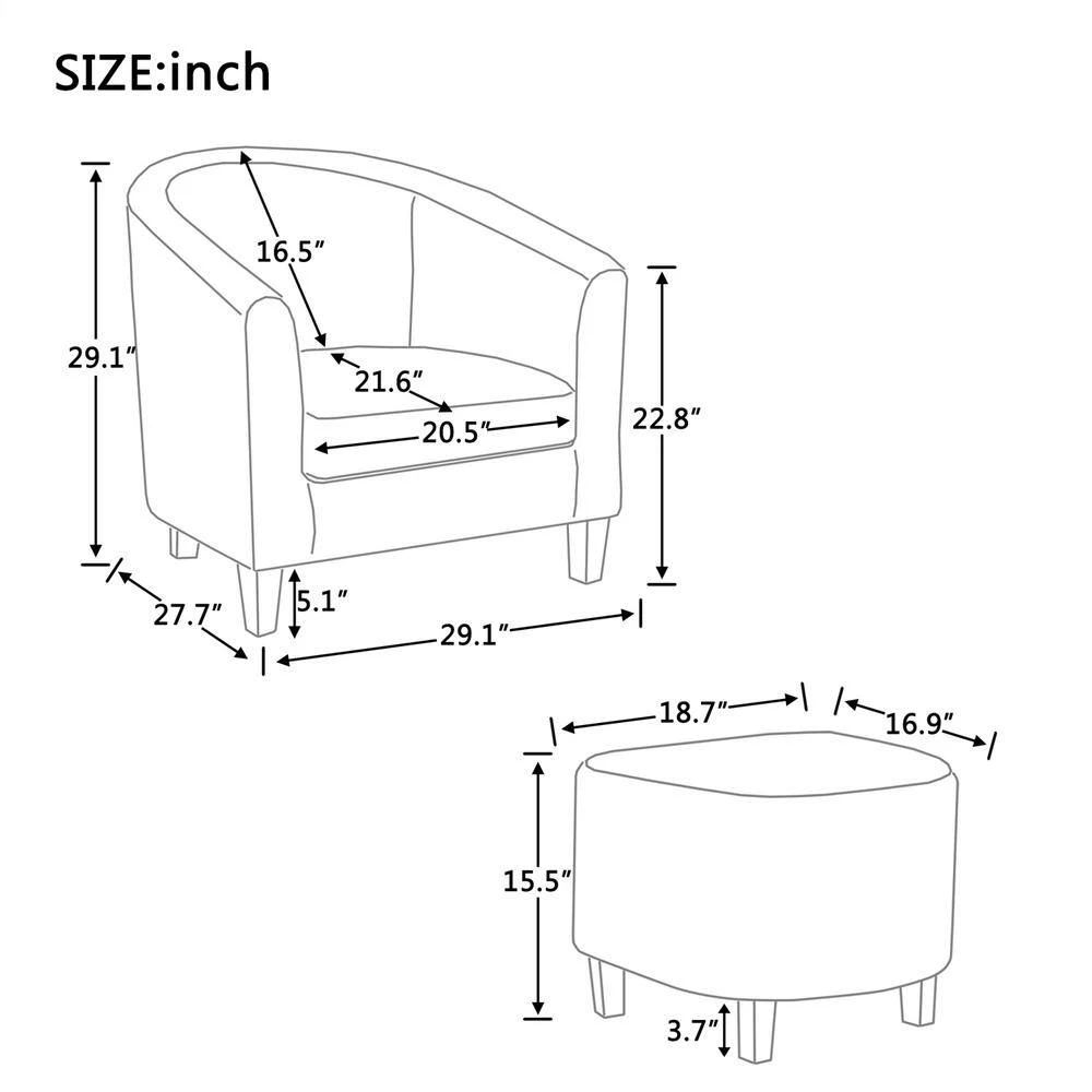 - Ottoman dimensions: 18.7 in. L x 16.9 in. D x 14.3 in. H