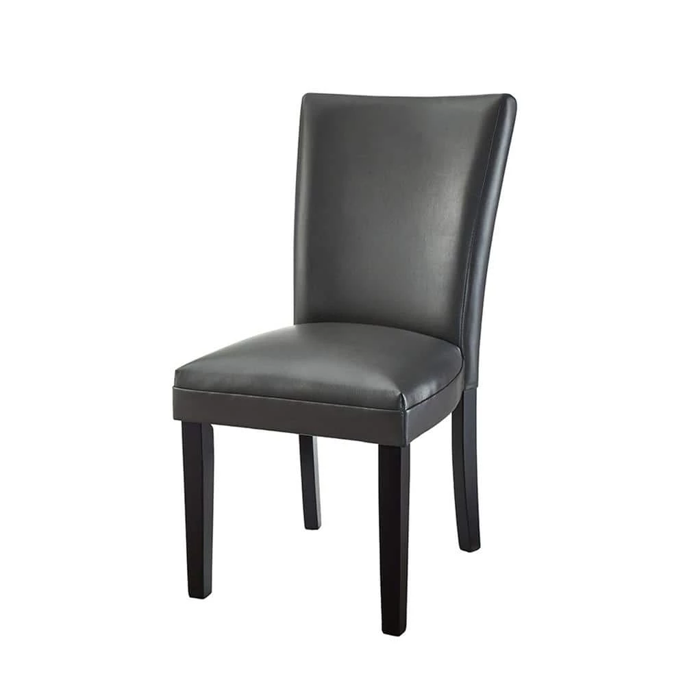 - Its faux leather chairs have a solid real wood frame with comfy padded seats and a supportive mid back design.