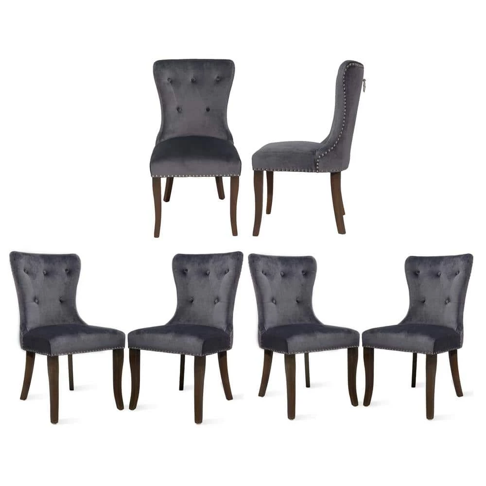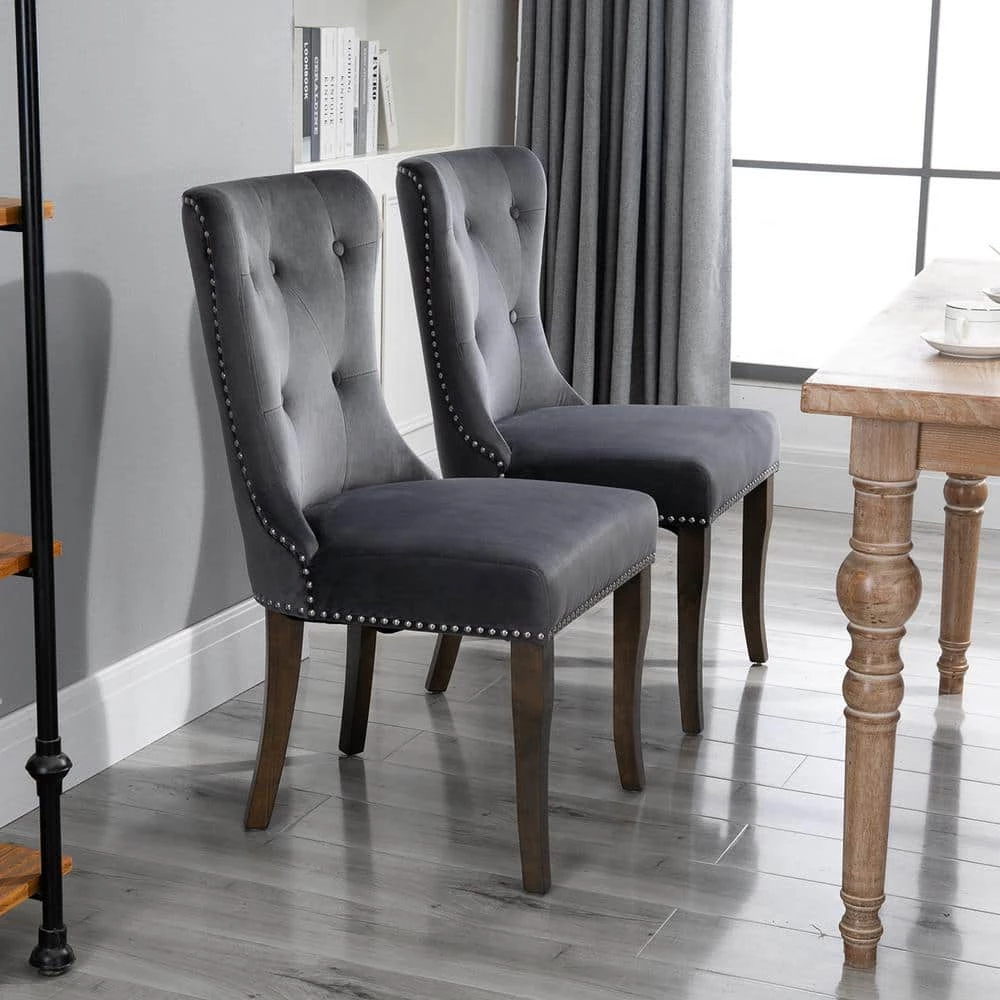 - Silver nailhead trim detailing and classic button tufting for a elegant look; and metal ring on the chair back for pulling the chair out easily.
