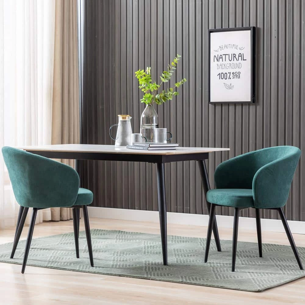 This dining collection will be the focal point of any home with its green finish and elegant structure. This dining set is the perfect statement addition to any dining area. Table and bench are NOT included.