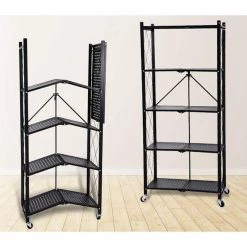 63.78 in. Black Iron 5 Shelf Foldable Bookcase with Wheels by Wateday