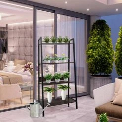 45.7 in. Rustic Brown Wood 4-Shelf Ladder Bookcase by Wateday