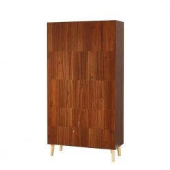 67.32 in. H Walnut Wood 3-Shelf Bookcase with 2 Doors by Wateday