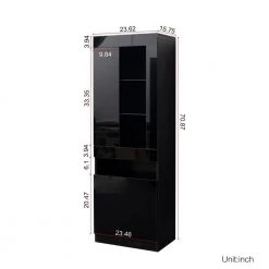 Black Side Storage Cabinet with Shelves, LED Light by Wateday