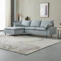 99.60 in. W Square Arm 2-Piece L-Shaped Linen Sectional Sofa in Gray with Left Chaise by Wateday