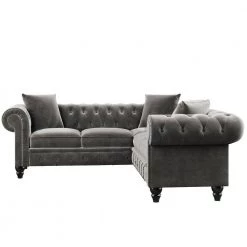 80 in. W Rolled Arm 1-Piece Velvet L-shaped Sectional Sofa in Gray with 3 Pillows by Wateday