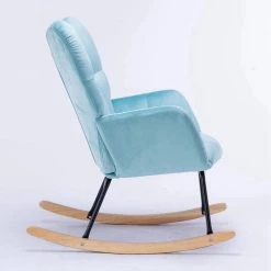 Blue Velvet Tufted Rocking Arm Chair Side Chair by Wateday