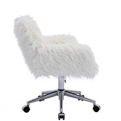 White Faux Fur Swivel Office Chair with Non-Adjustable Arms by Wateday