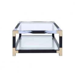 54 in. L Black Rectangle Glass Coffee Table with Shelf by Wateday