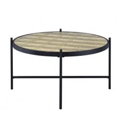 35 in. L Black Round Glass Coffee Table with Metal Frame by Wateday