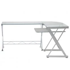45.25 in. L-Shaped White Glass Computer Desk with Keyboard Tray by Wateday