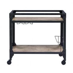 Gold and Black Finish Serving Cart with Wheels by Wateday