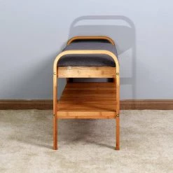 Natural Color Shoe Rack Bench with 2-tier Shelves 19.88 in. H x 13 in. W x 35.43 in. D by Wateday