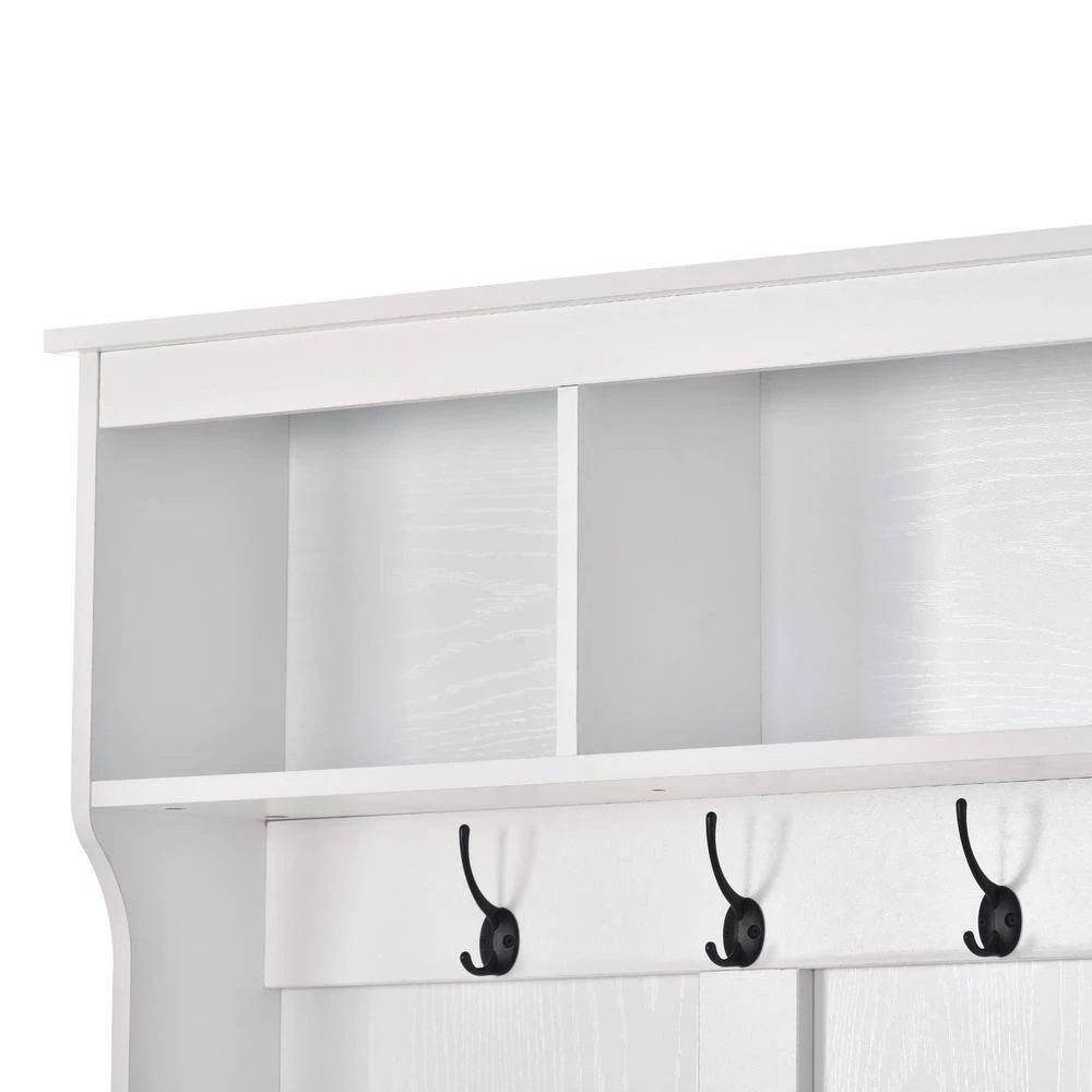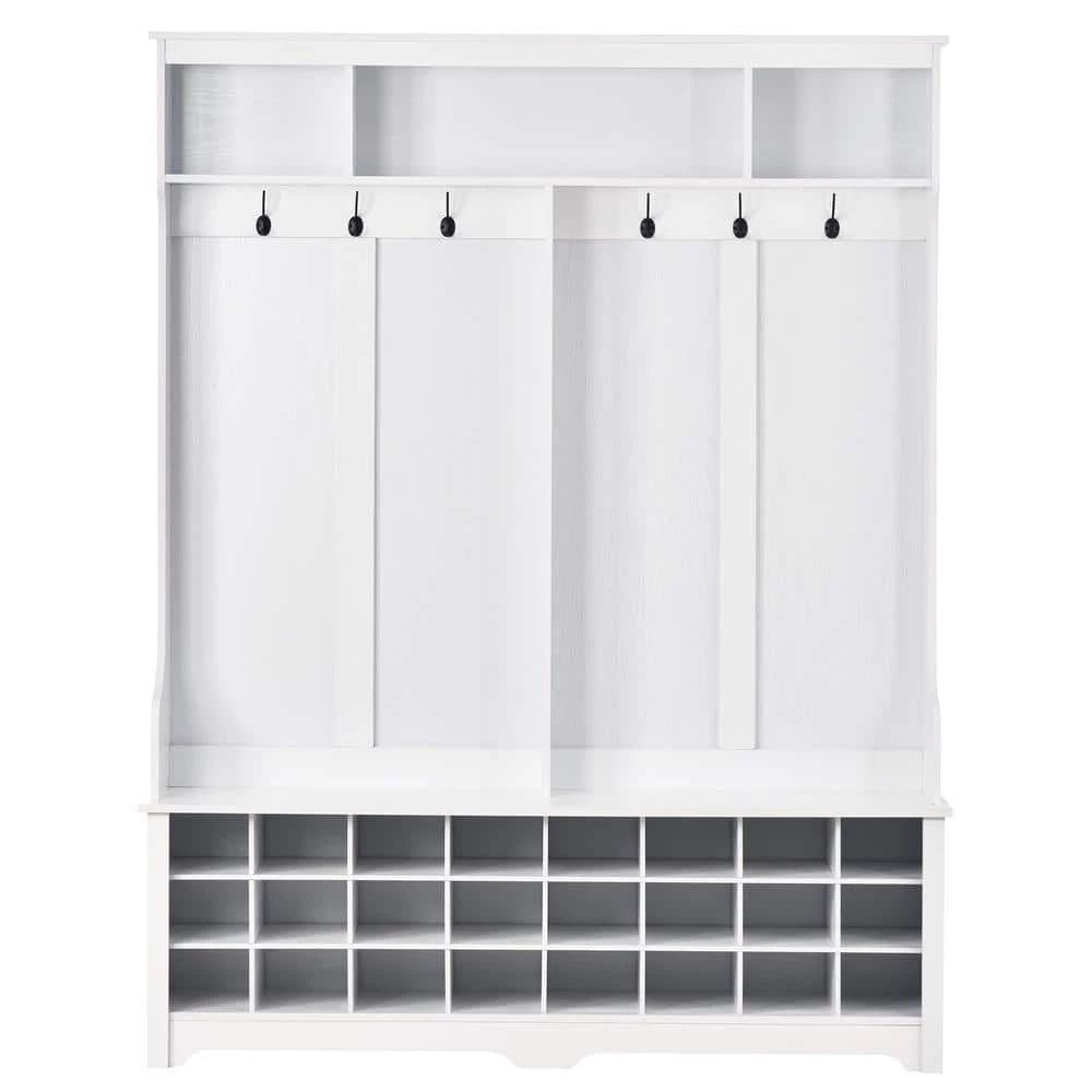 - 24-shoe cubbies at the bottom of this hallway coat rack